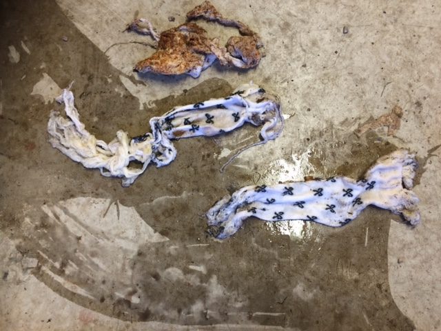 Att döma av vad som fiskats upp ur pumpen kan det röra sig om barn som spolat ner sina strumpor och underbyxor, någon som vid städning spolat ner rengöringstrasor och tvättlappar i toaletten eller någon som ibland bytt bandage och spolat ner detta.